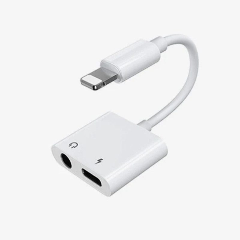 - Lightning 8pin to 3.5mm audio jack + female Lightning charging port