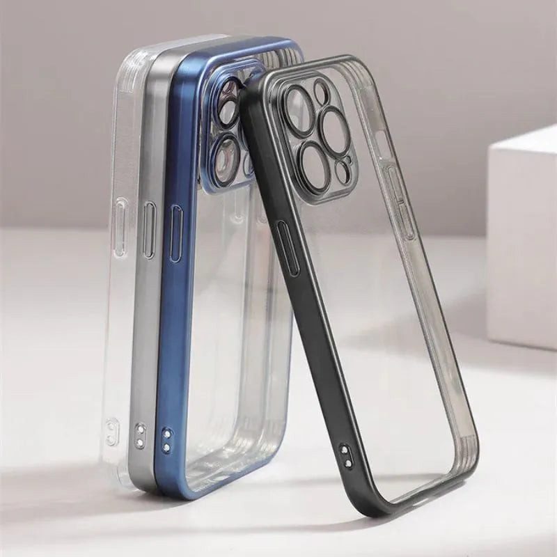 - Clear TPU case with lens protector for iPhone 15 Pro Max.