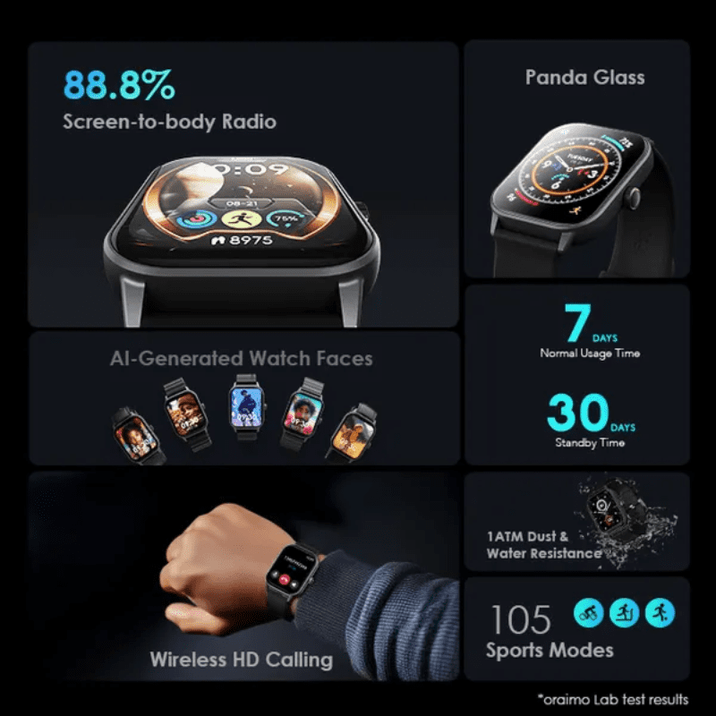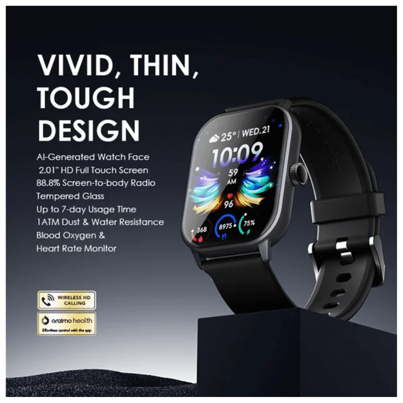 Oraimo Watch 5 is designed for users who want a large display, modern smart features, and reliable performance in one stylish smartwatch. For users searching for the Oraimo Watch 5 price in Pakistan, this smartwatch features a 2.01-inch display that delivers clear visuals and smooth touch interaction.