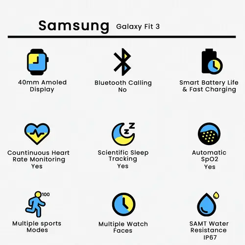 Whether you?re starting a fitness routine or looking to stay on top of your wellness, the Samsung Galaxy Fit 3 offers reliable tracking, stylish design, and smart features in a compact package.