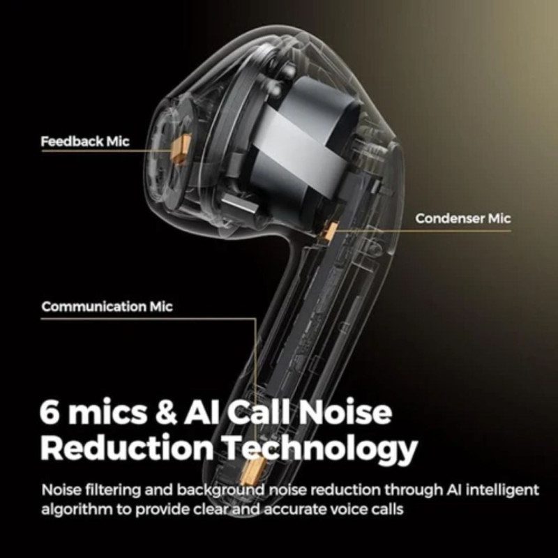 For quiet listening, the Adaptive ANC automatically fine-tunes noise cancellation, reaching depths up to 45dB. A 6-mic system with CVC noise cancellation ensures crystal-clear voice and video calls, even in loud environments.