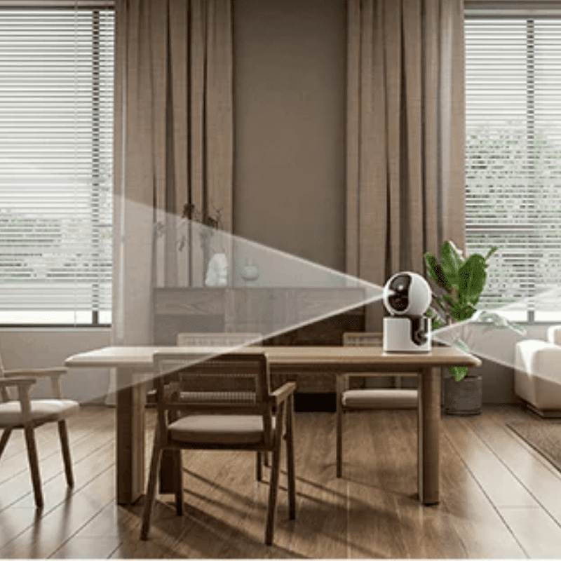 This smart camera delivers high-quality dual-lens video output and pairs easily with your smartphone for live viewing, alerts, and remote control. Its sleek white design fits well into modern interiors, while the dependable build supports daily monitoring tasks. Whether you are watching over kids, pets, or daily activity, this camera delivers consistent and stable performance.